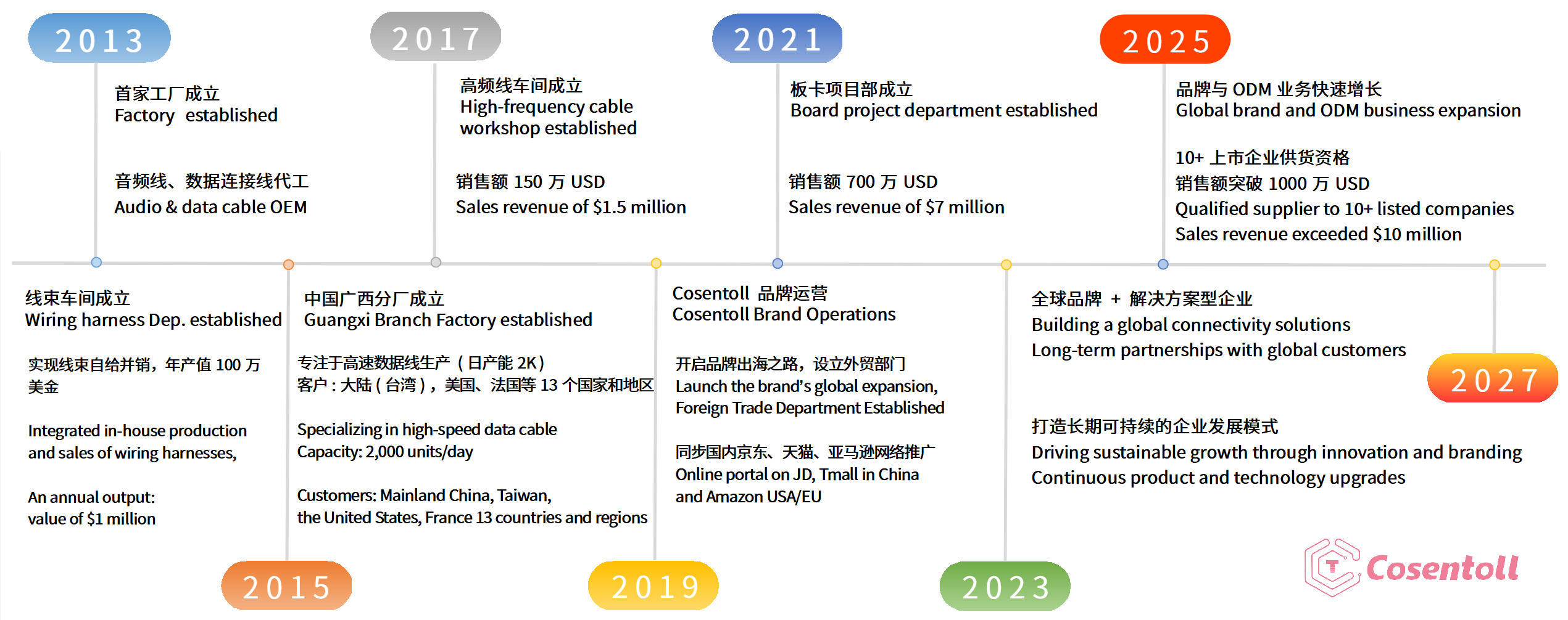 2017年:建立高频线车间,专注于高速数据线的生产。年销售额超过1000万元人民币,成为高速数据线领域的重要参与者。